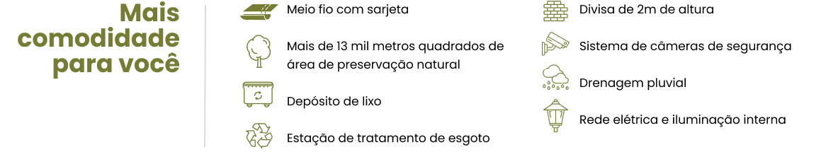 O condomínio conta com acesso controlado por portaria 24h, monitoramento por câmeras e perímetro fechado, garantindo que você e sua família aproveitem cada momento com tranquilidade. Aqui, você vive cercado de cuidado, dentro e fora de casa.