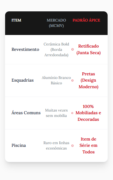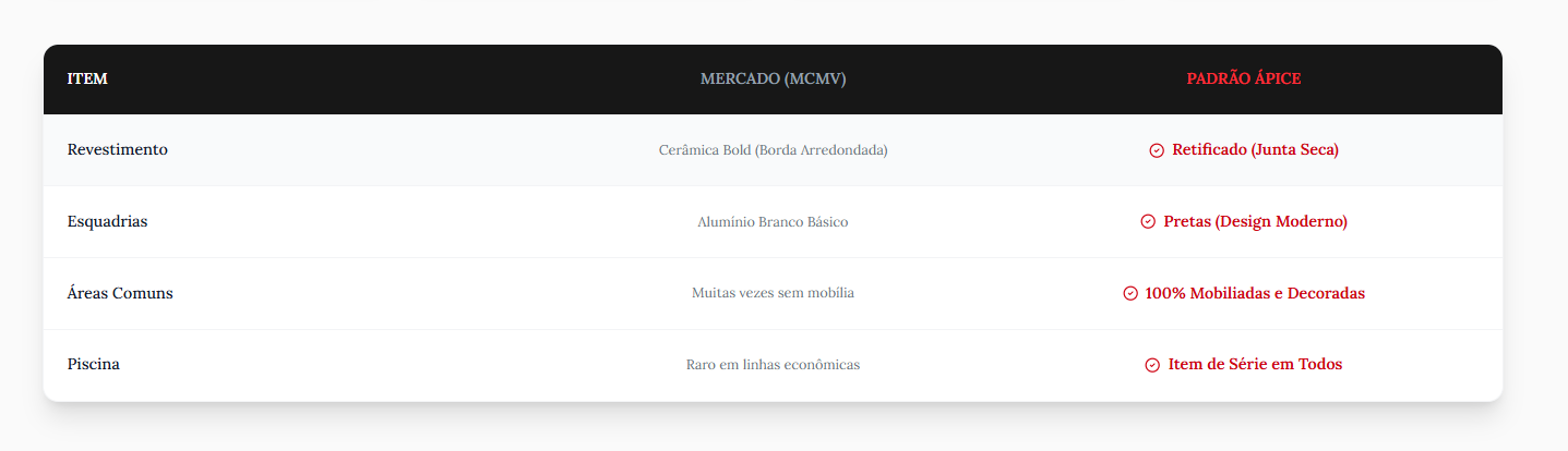O PADRÃO ÁPICE: QUALIDADE SUPERIOR AO SEU ALCANCE.